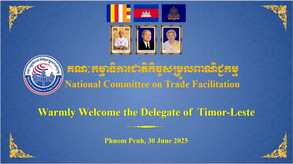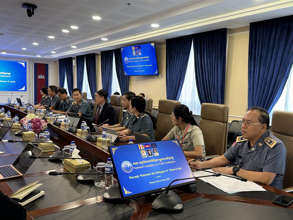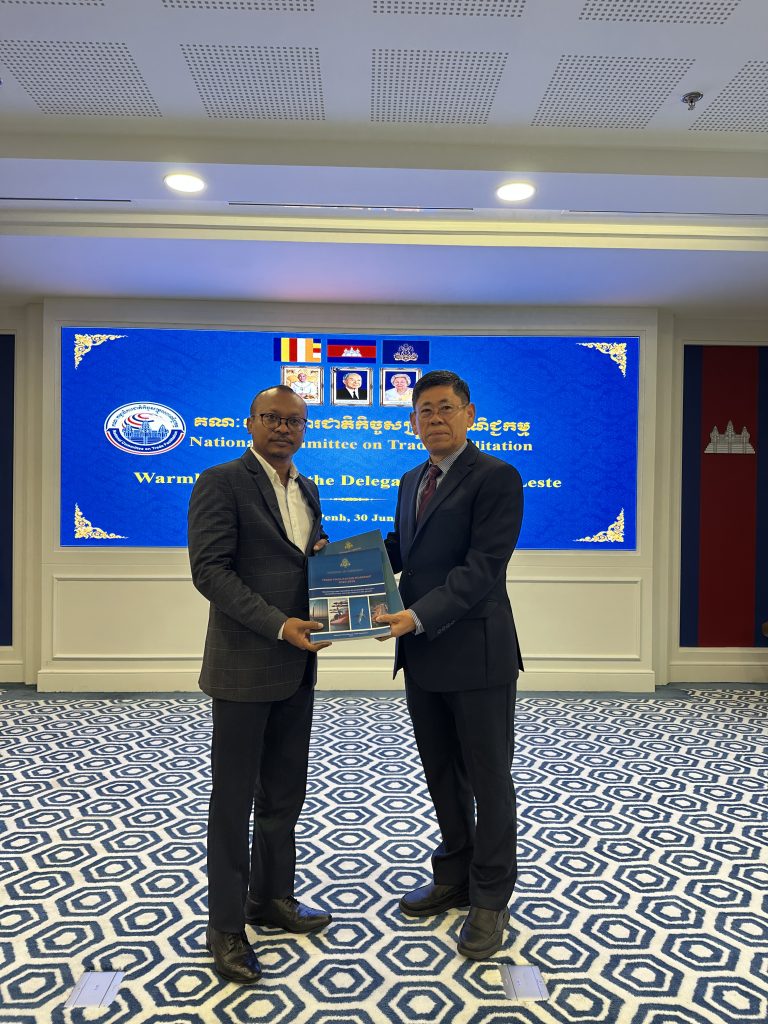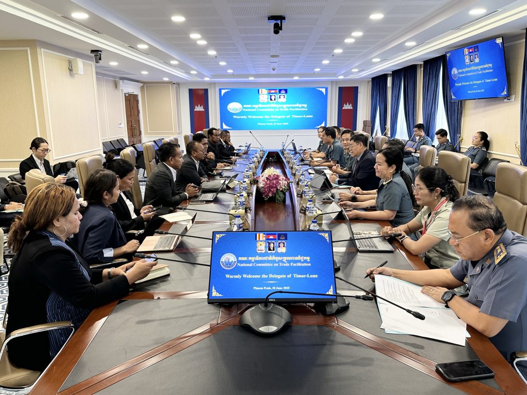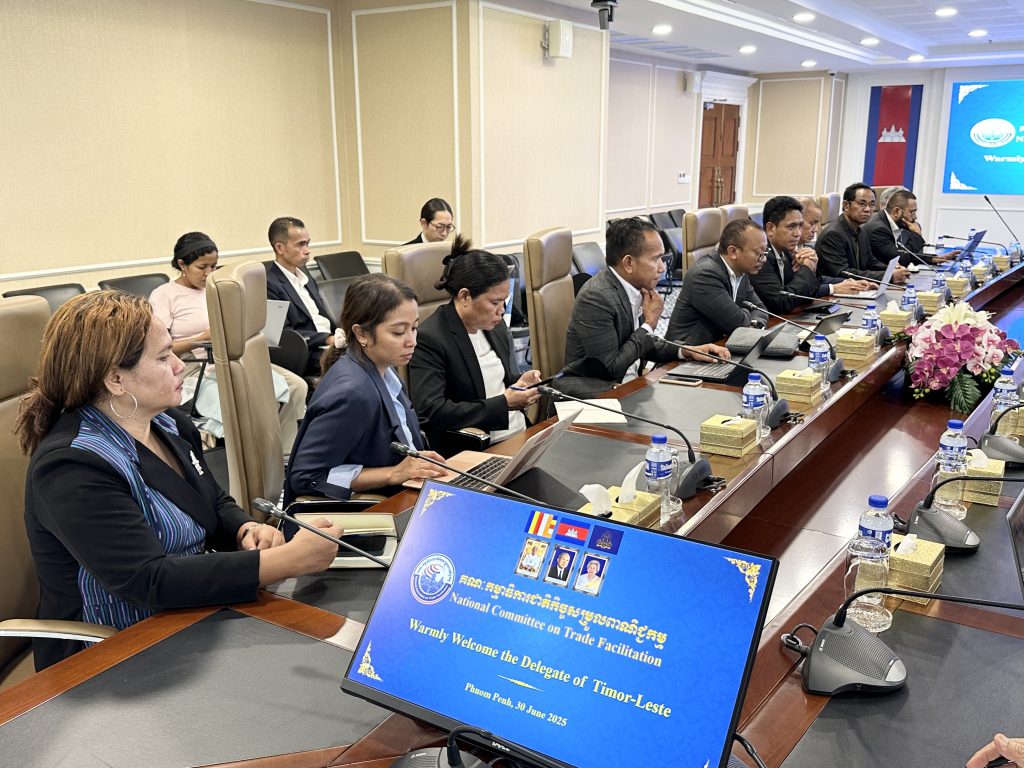 នារសៀលថ្ងៃចន្ទ ៥កើត ខែអាសាឍ ឆ្នាំម្សាញ់ សប្តស័ក ព.ស.២៥៦៩ ត្រូវនឹងថ្ងៃទី៣០ ខែមិថុនា ឆ្នាំ២០២៥ ក្រោមកិច្ចសហការសម្របសម្រួលដោយទីភ្នាក់ងារសហប្រតិបត្តិការអន្តរជាតិ នៃប្រទេសជប៉ុន (JICA) និងក្រសួងពាណិជ្ជកម្មកម្ពុជា, គណៈប្រតិភូនៃប្រទេសទីម័រខាងកើត (Timor-Leste) ដឹកនាំដោយលោក Francisco Borolaku ប្រធានទីប្រឹក្សាក្រសួងពាណិជ្ជកម្មនៃប្រទេសទីម័រខាងកើត  បានធ្វើទស្សនកិច្ចសិក្សាមកកាន់លេខាធិការដ្ឋានគណៈកម្មាធិការជាតិកិច្ចសម្រួលពាណិជ្ជកម្ម (គ.ជ.ស.ព.) ដែលមានទីតាំងនៅអគ្គនាយកដ្ឋានគយនិងរដ្ឋាករកម្ពុជា (អគរ) ដើម្បីជួបប្រជុំនិងស្វែងយល់ការងាររបស់ គ.ជ.ស.ព. និងភាពជោគជ័យរបស់កម្ពុជាក្នុងការអនុវត្តកិច្ចព្រមព្រៀងស្តីពីកិច្ចសម្រួលពាណិជ្ជកម្ម របស់អង្គការពាណិជ្ជកម្មពិភពលោក (WTO-TFA)។